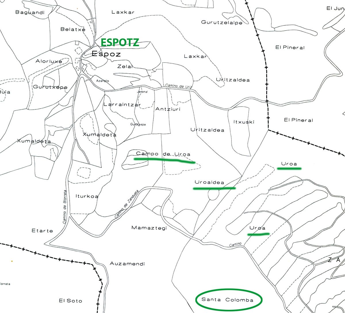 “UROA.—En val de Arci, manifestándose en 1401, que pagaba un cuartel de pecha en trigo, en cumplimiento del testamento de don Pedro García, abad del mismo. Su situación se explica así: «Et porque el dicho logar es desolado et las heredades … fincas vacantes por muerte de los labradores que pagauan la pecha dicha». Son arrendadas las yerbas y aguas a Diego de Urtubia, señor de Arci durante cinco años, a partir de la fiesta de Santa Cruz (Reg. 264). En 1433 se dice que, las yerbas y aguas las tenía el Conde de Cortes, que se había expatriado por diferencias con el rey, habiendo poseído este lugar en 1416, bajo el reinado de Carlos III. Su mujer, doña Teresa de Arellano, lo tuvo temporalmente y después arrendó el lugar el patrimonial por 20 años y 4 libras anuales. En el Libro de Fuegos de 1428, figura el lugar entre los desolados del valle. En el de 1366, aparece también como despoblado, «porque no ha labrador», lo mismo que Urrobi y Urdaci. Los collazos que fueron de don García, hijodalgo, por testamento, habían muerto.”